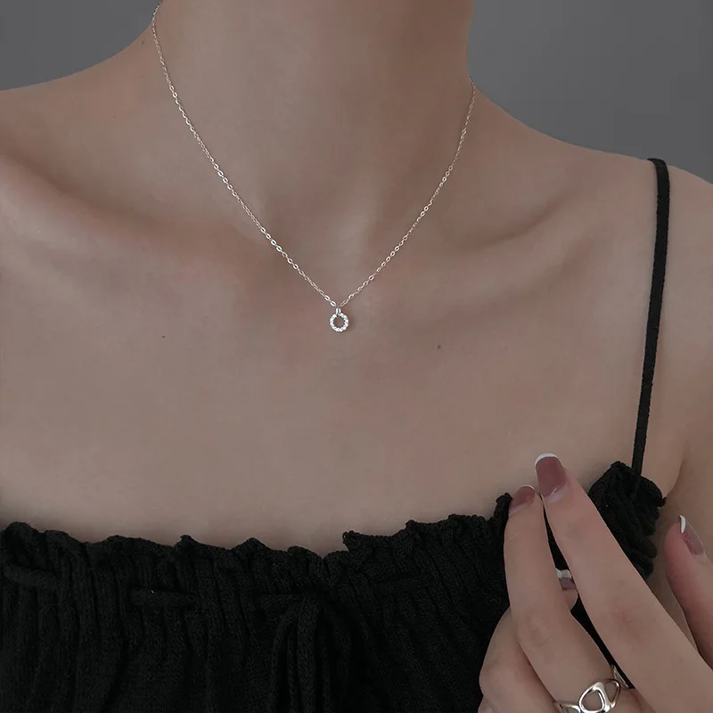 925 Sterling Silver Necklace Flash Diamond Geometric Double Circle Pendant Female Fashio
