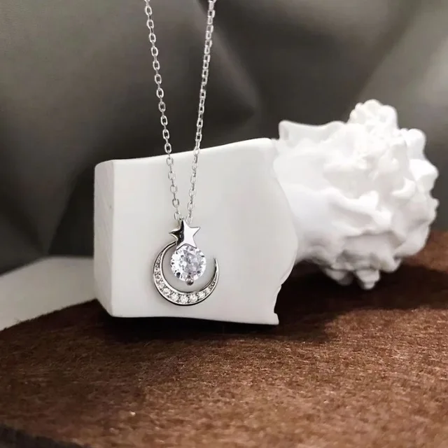 Be the first to review “925 Sterling Silver New Fashion Star Necklace Sparkling Zircon Moon Pendant Collar Chain”