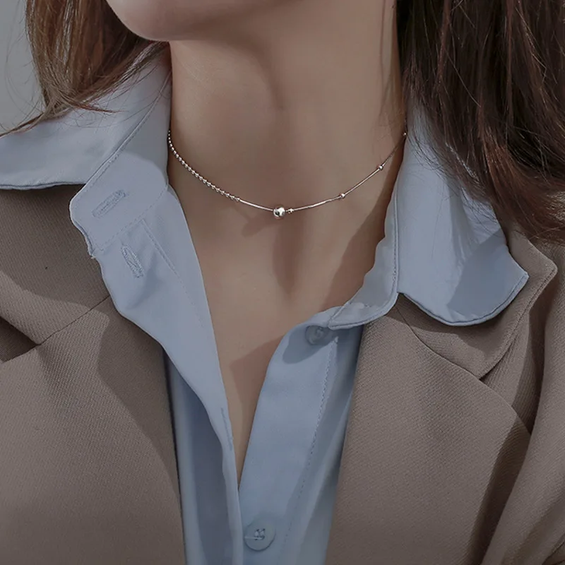 925 Sterling Silver Snake Bone Chain Simple Short Style Temperament Round Bead Collar Chain Neckchain