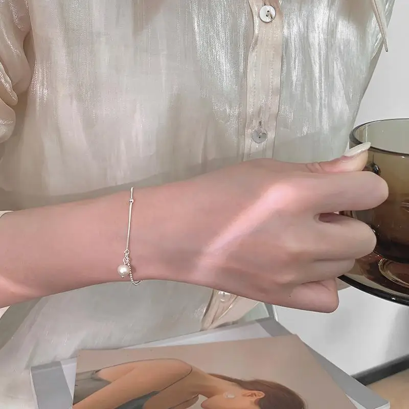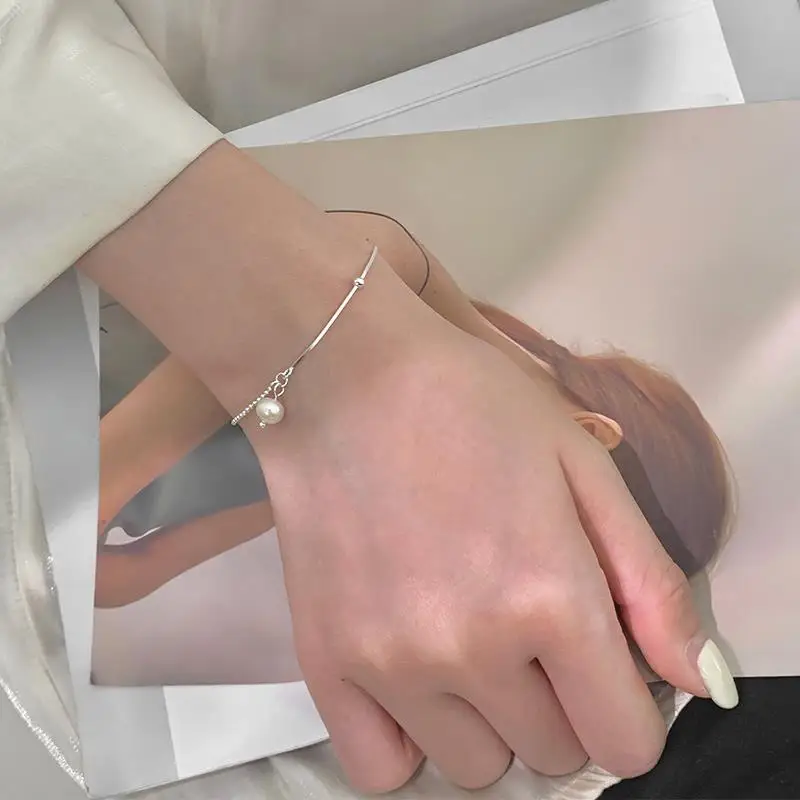 Popular 925 Sterling Silver Pearl Bracelet Simple Charm Bracelet Birthday Party Gift For Women’s Fashion Jewelry Free Shipping