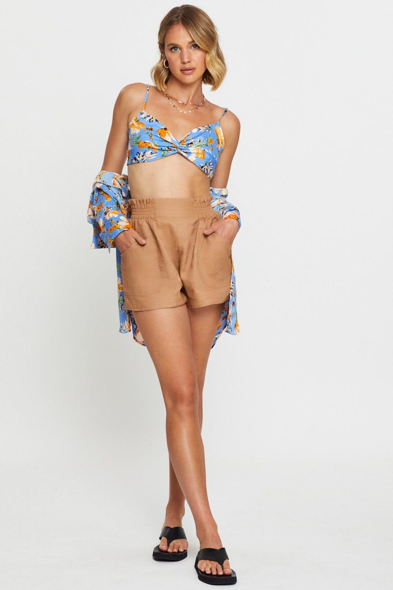 Season:AllStyle:CasualPattern:PrintFeatures: Floral Print, Cropped Length, Satin Finish, Twist Detail FrontNeckline: Sweetheart NeckBody Length:30CmFabric:PolyesterMaterial:CottonComposition: 65% Cott... read more
